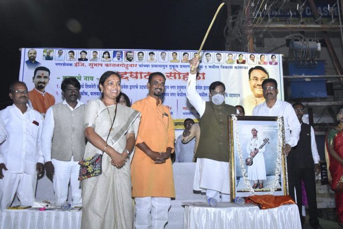 आ.मुनगंटीवार यांचे हस्ते हनुमान नगर प्रवेश द्वार,एल इ डि लाईट,दुर्गा माता चौक व श्री स्वामी समर्थ-शिवनेरी ग्राउंड बालोद्यानचे उदघाटन करण्यात आले.