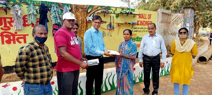 माणुसकीची भिंत अंतर्गत कपडे, भांडे, पुस्तके, चप्पल, लहान मुलांचे खेळणे इत्यादी देता तसेच नेता येतील. याप्रसंगी आयुक्तांच्या हस्ते गरजु नागरिकांना कपडे,पुस्तके,खेळणी वितरित करण्यात आल्या, यावेळी प्रशासन अधीकारी श्री नित ,मुख्य स्वच्छता निरीक्षक विवेक पोतनूरवार, श्री प्रदीप मडावी, संतोष गरगेलवार,अनिरुद्ध राजूरकर,सौ साक्षी कार्लेकर,सुनील तुंगीडवार ,रमेश कोकुळे, वार्डातील नागरिक, शालेय विद्यार्थी उपस्थित होते, प्रभागातील गरीब व गरजू व्यक्तींनी याचा लाभ घघेण्याचे आवाहन मनपातर्फे करण्यात येत आहे.