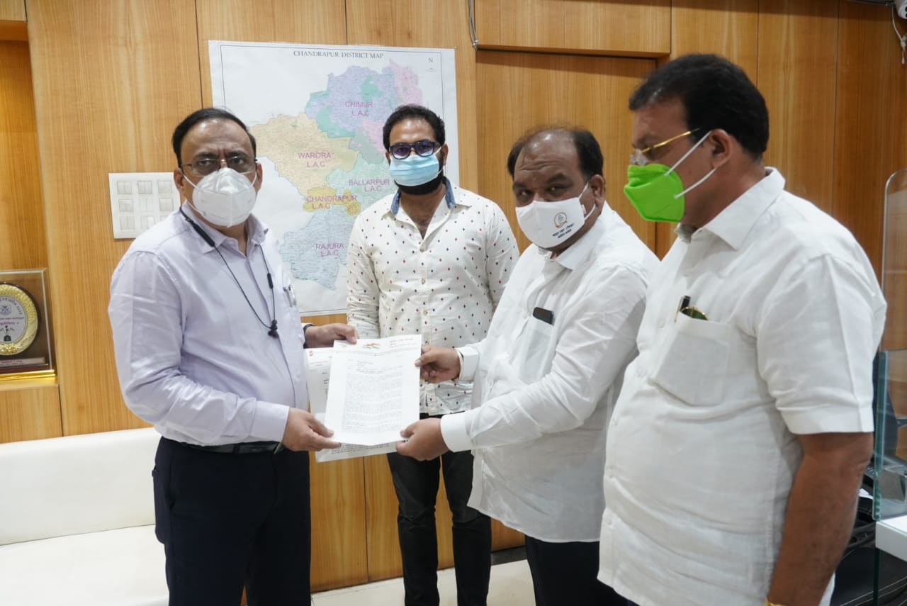 कांग्रेसचे जिल्हाध्यक्ष रामू तिवारी, प्रकाश देवतळे यांचे जिल्हाधिकाऱ्यांना निवेदन